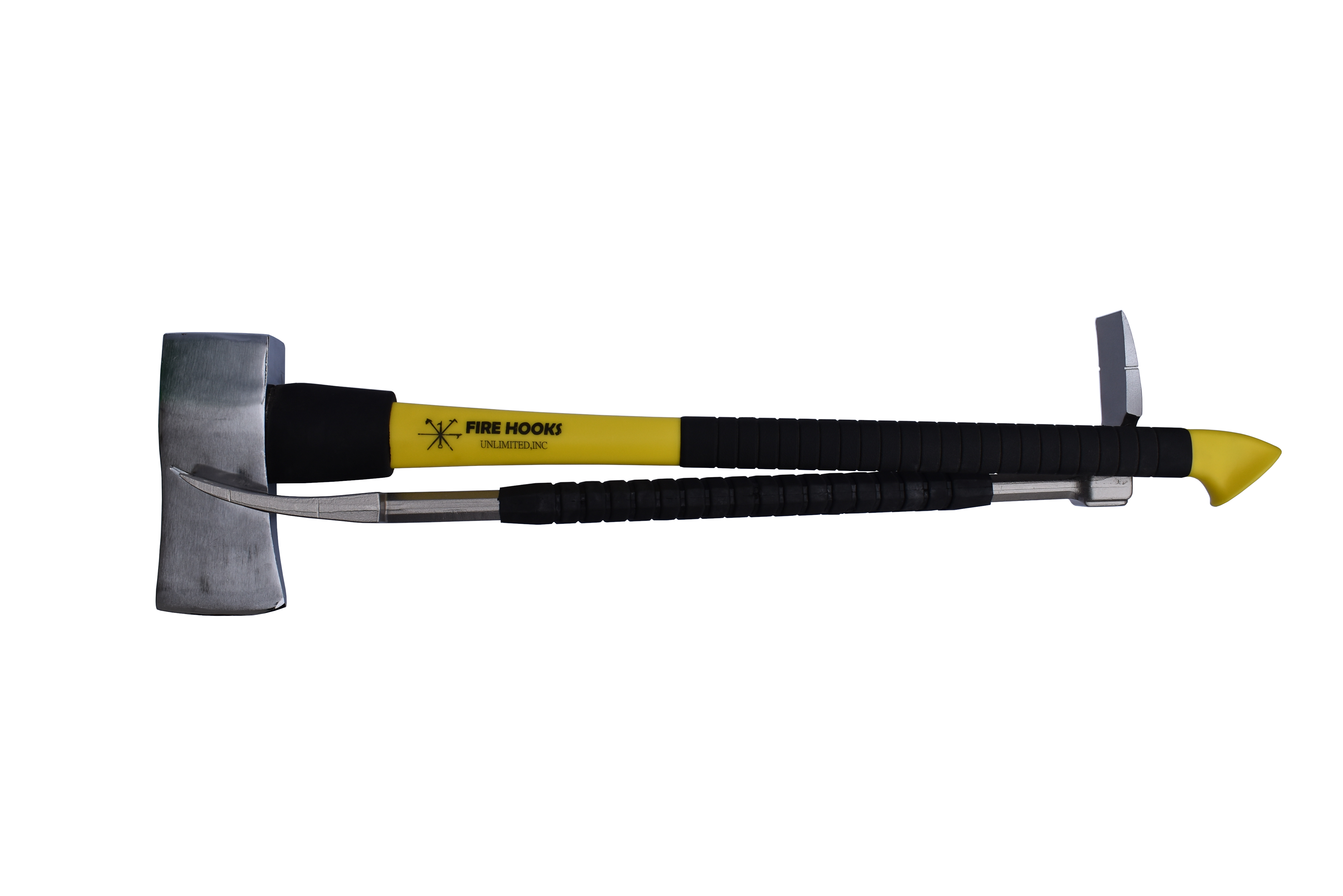 The ultimate firefighter forcible entry tool set. The standard set includes the Maxximus forcible entry tool and the Lock Slot 8lb Force Axe (Part: DYN-DUO). You may order it with the Maxxius Rex (Part: DYN-DUO-REX) or the Maxximus Mod (DYN-DUO-MOD). The marrying slot locks the Maximus to the Axe for easy one hand carrying - no straps required. Tap the handle on any surface for quick release.