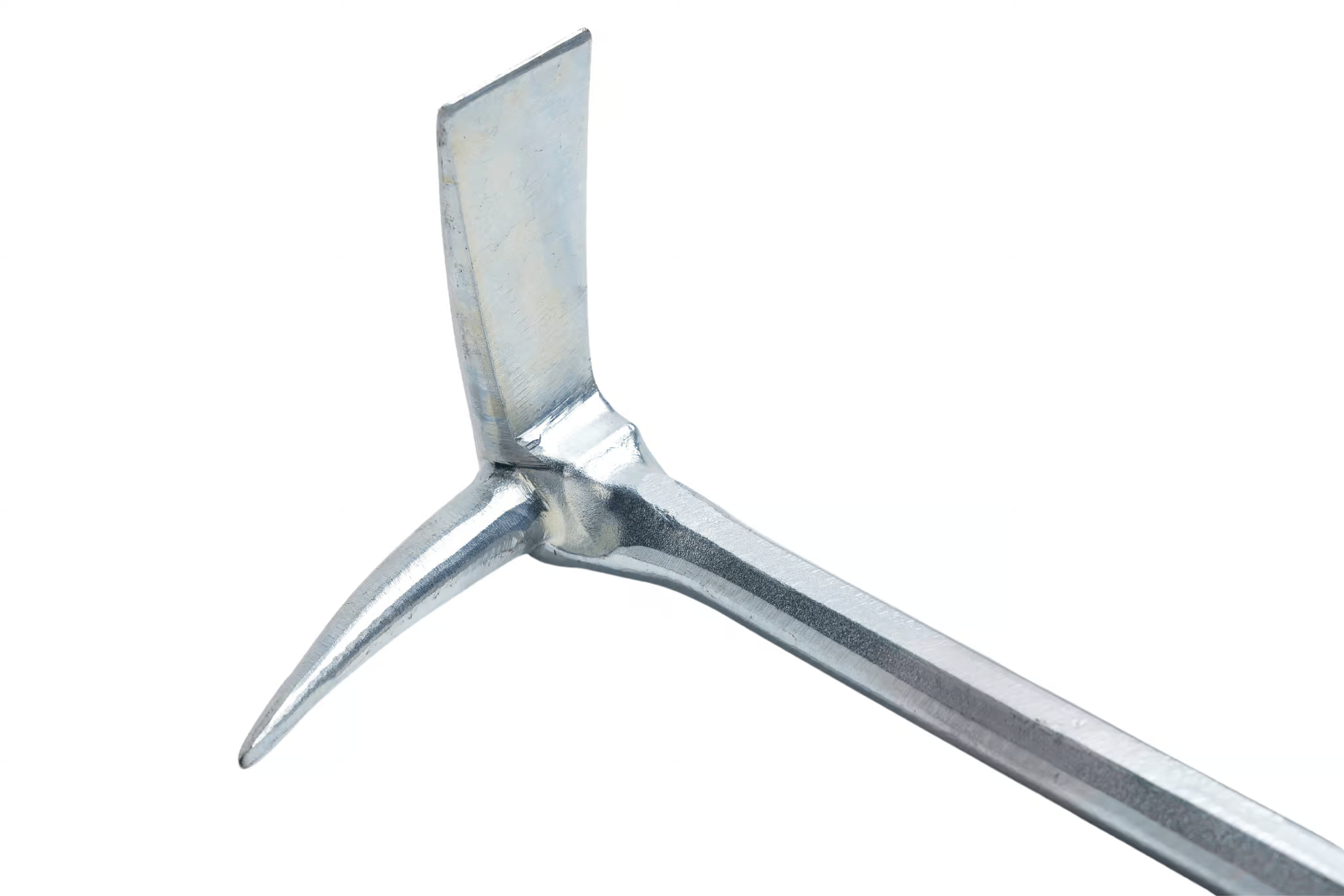 | MINI PRO-BAR (PART: MPB)& LIL PRO-BAR (PART: LPB) A-type lock cylinder puller built into the adz end to pull recessed or flush cylinders. Handy pike on the adz enables user to pull trim, snap padlocks, make examining holes, pull lath plaster, vent windows, and probe during searches. (20-1/2" or 16") |