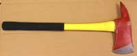 | SPLITTING MAUL # SMF-8-28 Fiberglass 8 lbs. splitting maul for forcible entry. Protected handle for overstrike and self extinguishing celtex grips. 28" long to fit any truckman's belt. # 8-SMG-28-B With adz bracket and Celtex grips |