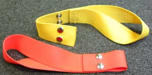 LITE LOOP The carry strap for any handled flashlight. Loops around the handle with heavy duty nylon and attches to any belt. Specifically made for your SCBA since the loop can be attached and removed after your SCBA is buckled using two heavy duty snaps. We are using two colors (Yellow and Orange) for lumination in smoke or poor light situations. The Orange matches the New FIRE VULCAN by Streamlight. An emergency release can be made if hung up by pulling a specifically designed tab - Use of this tab can also be used if you wish to use the light in a portable state in your hand. |